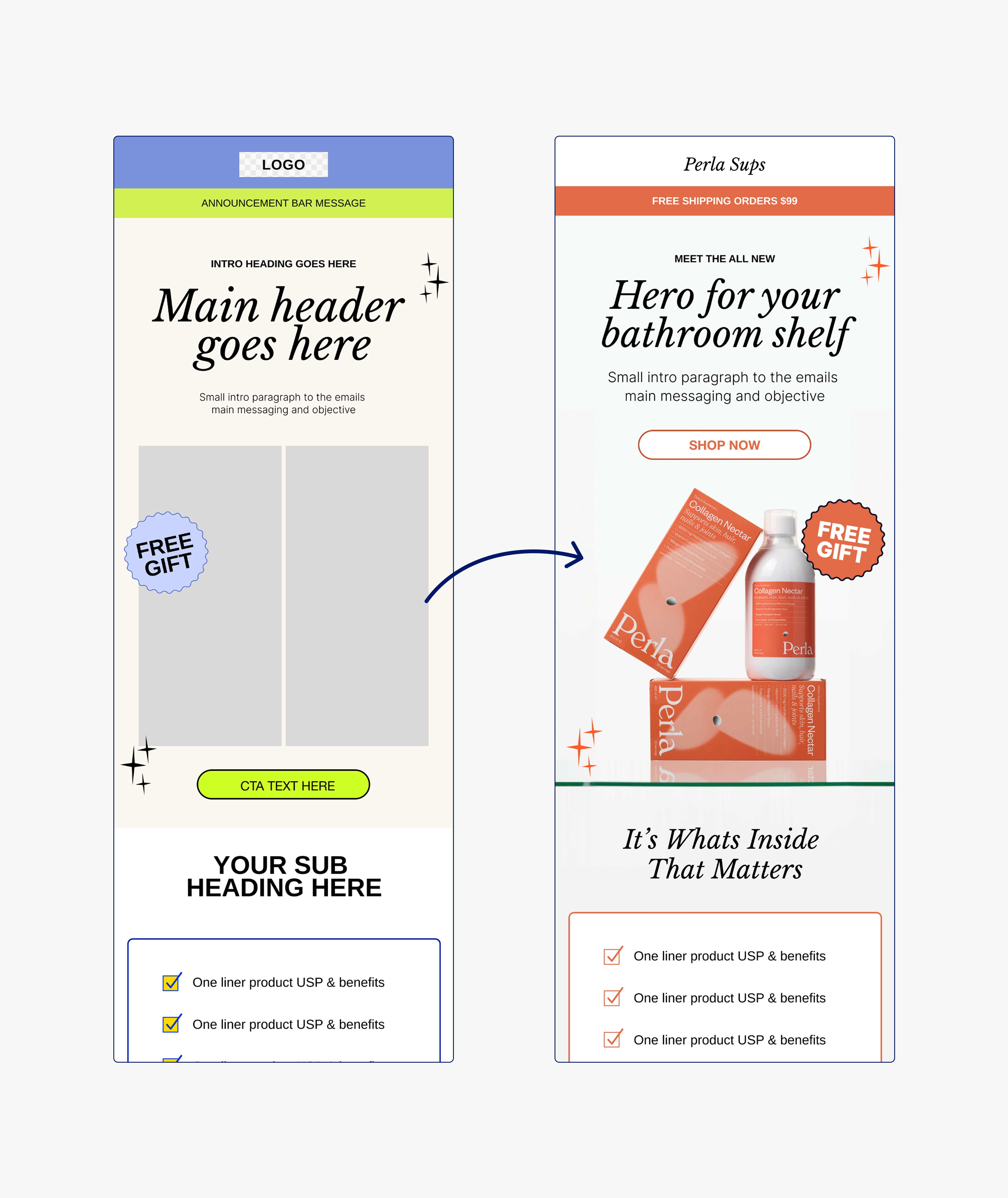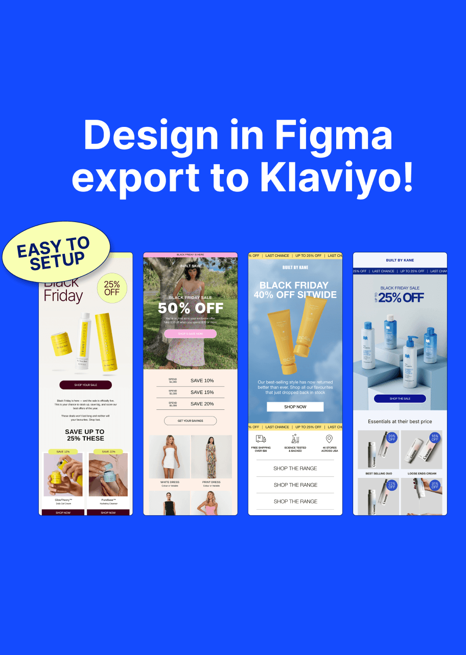 These templates are built to get you out of Figma and into Klaviyo fast. No complicated setup, no overthinking. Just a simple system you can reuse across campaigns and flows.